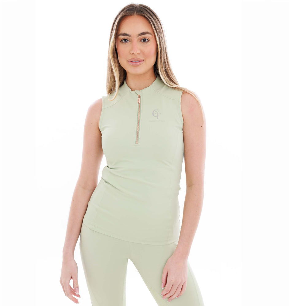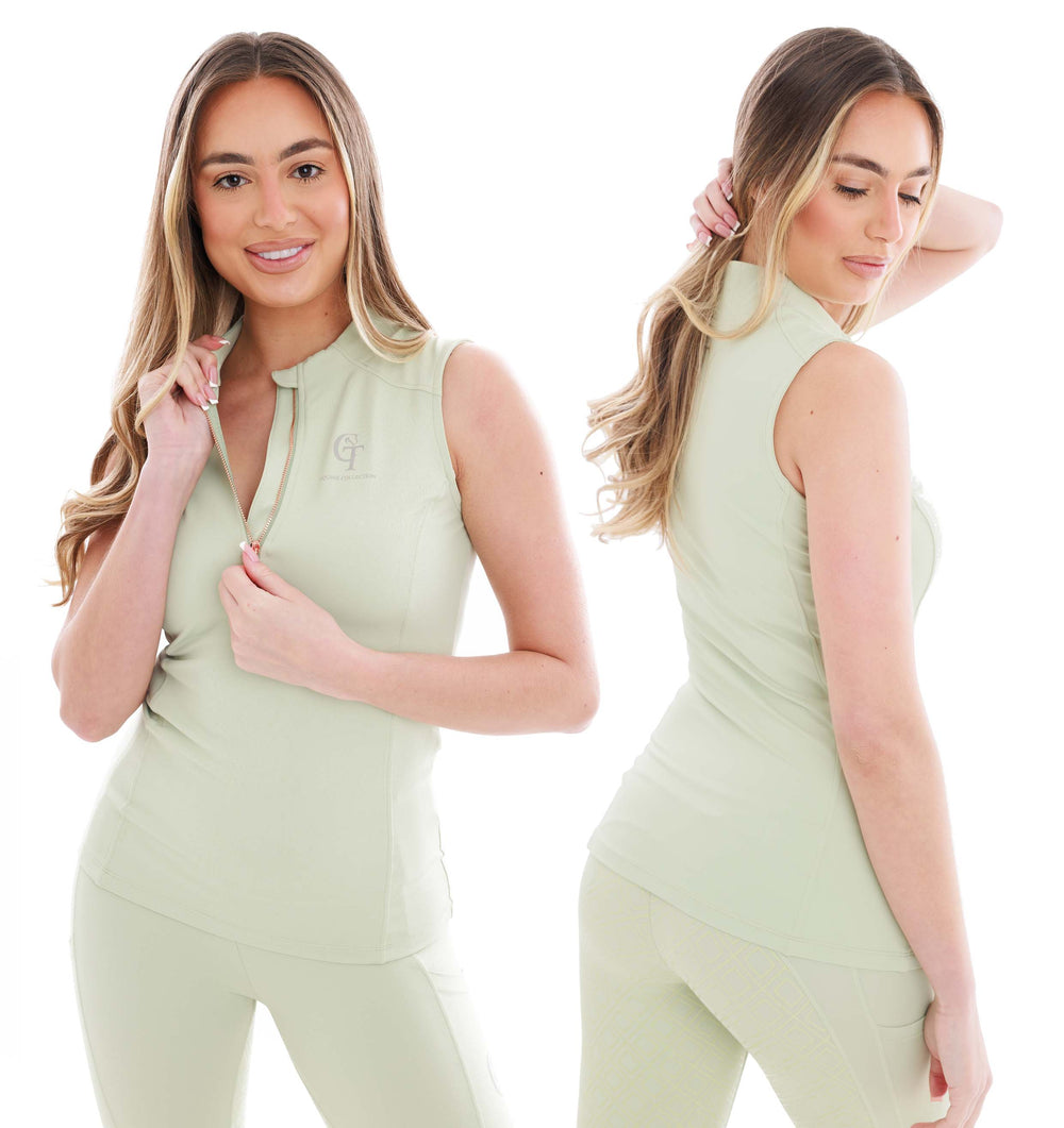 Our Horse Riding Sleeveless Base Layer Pastel Green has been designed with an extra breathable feel. It has the same sun protection as our matching Diamond Riding leggings.