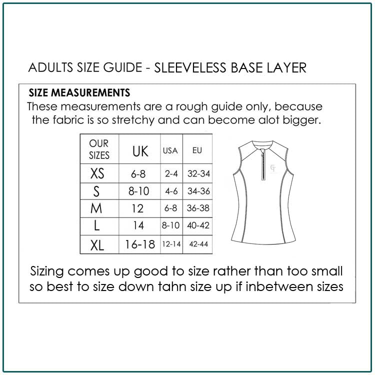 The Sleeveless Base Layers come up good to size and best to go down a size if inbetween sizes not up as in our long and short sleeve base layers.
