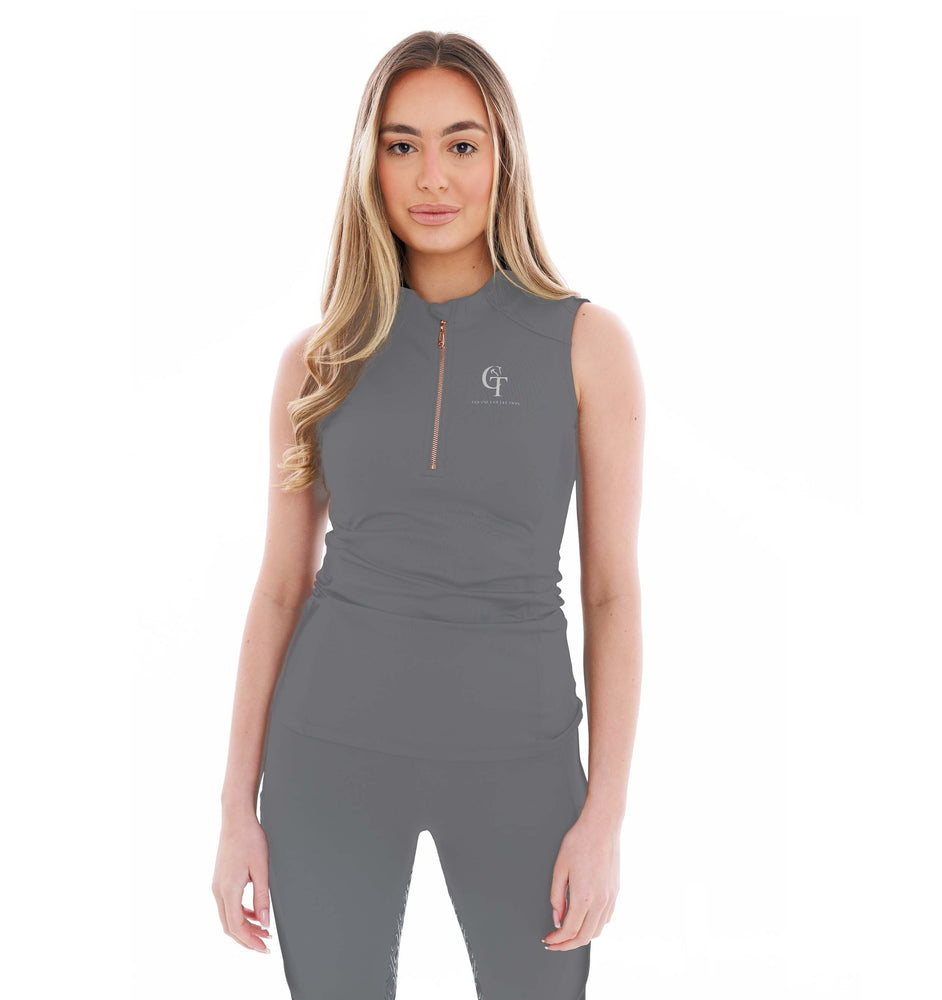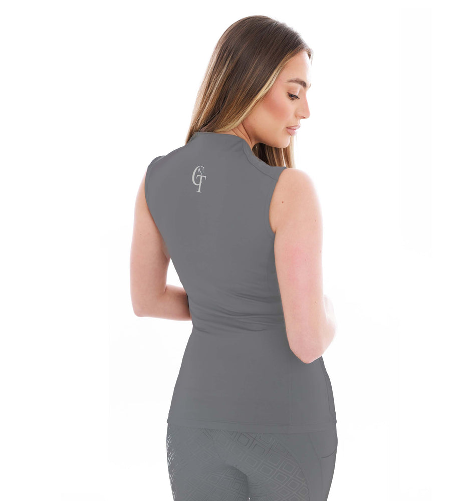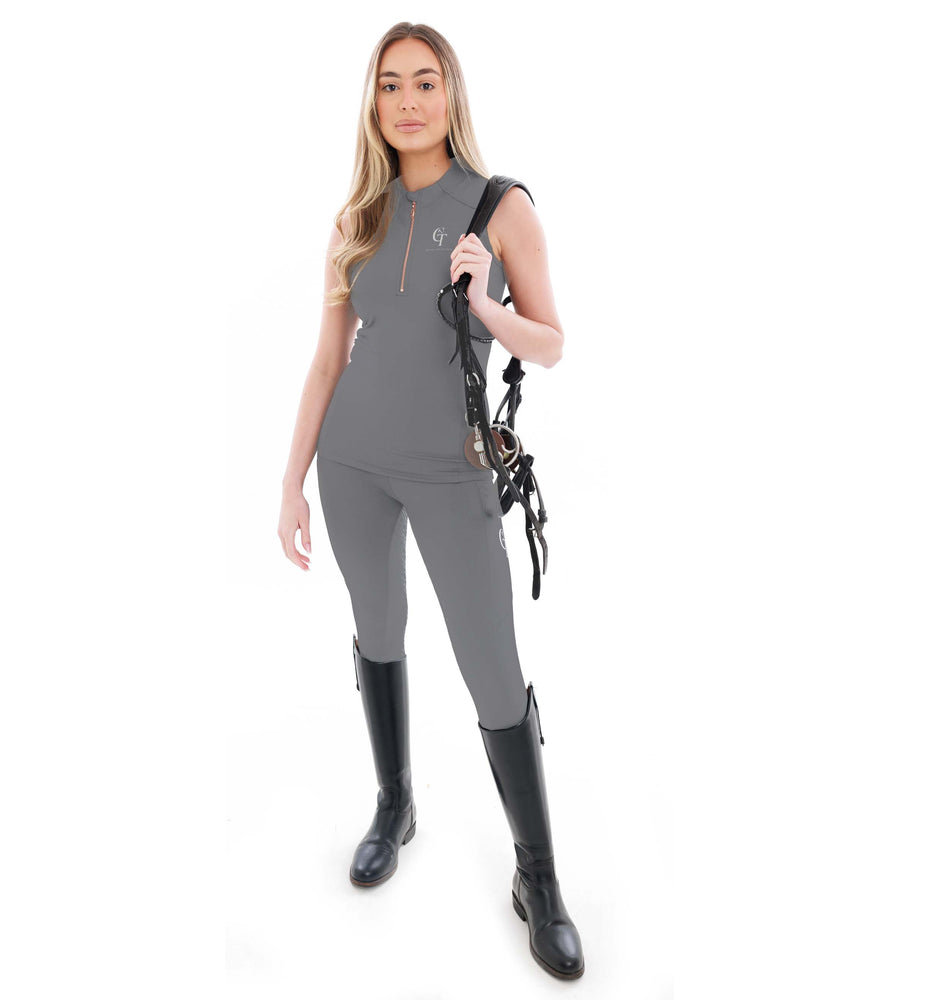 Our Horse Riding Sleeveless Base Layer Grey has been designed with an extra breathable feel. It has the same sun protection as our matching Diamond Riding  leggings.