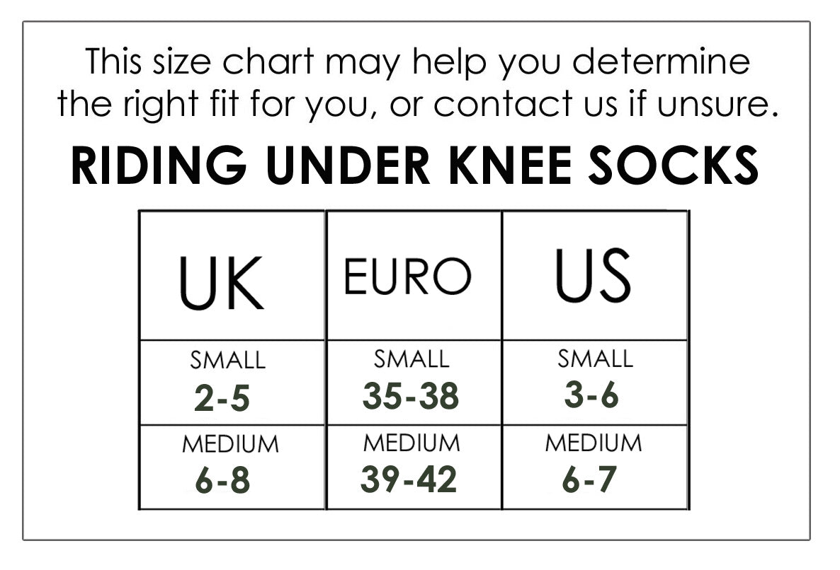 Long Horse Riding Socks are available in sizes -   Small & Medium